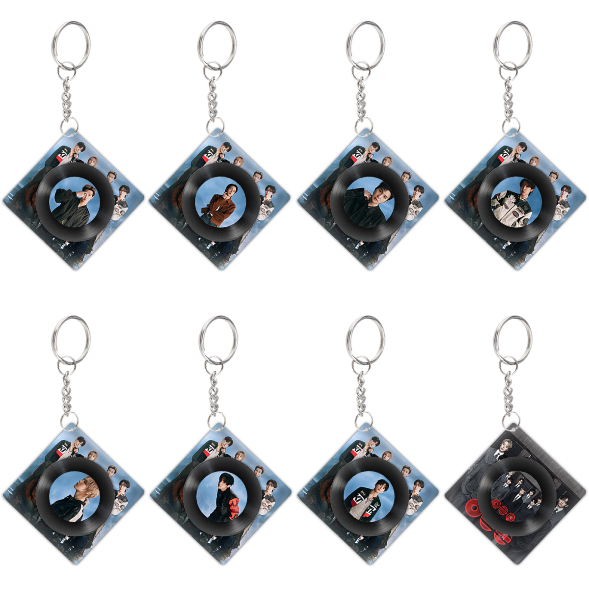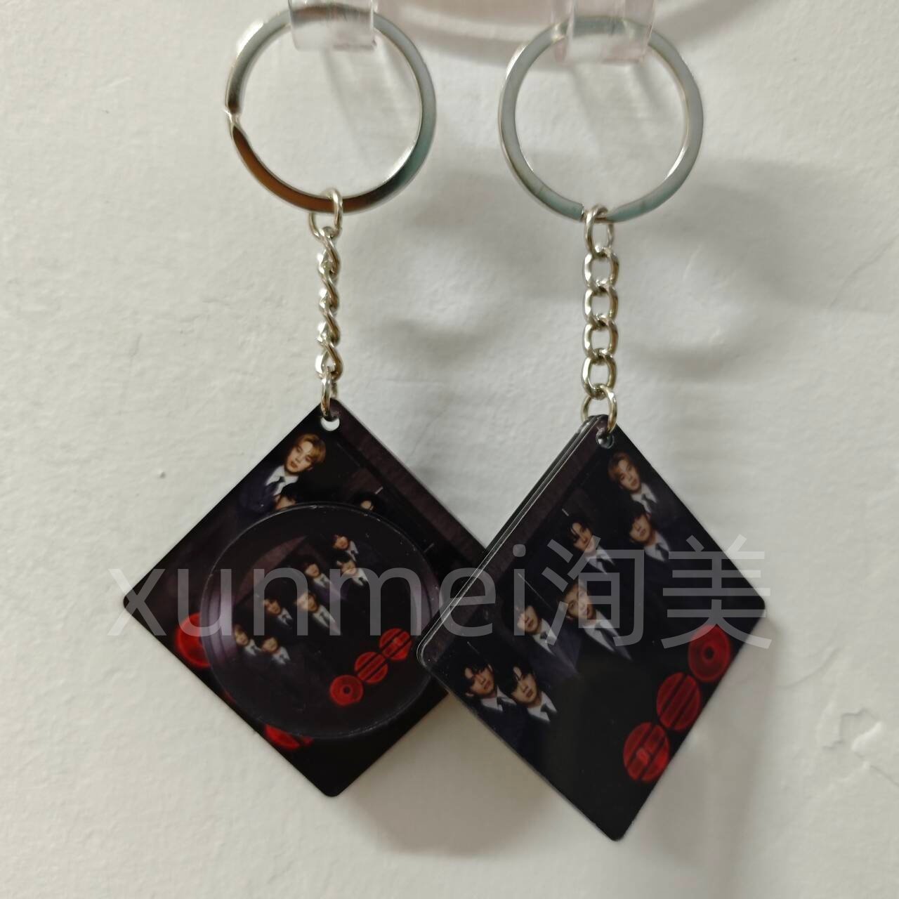 KPOP Bangtan Boys Acrylic Keychain Rotating CD keychain Jungkook Taehyung Jimin Jin Rm Suga Jhope Plastic Keys Charm